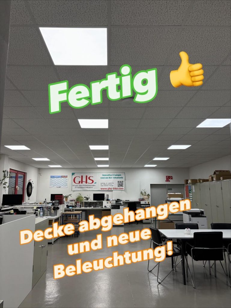 Das Ergebnis kann sich sehen lassen: Durch die abgehängte Decke verringert sich das zu beheizende Raumvolumen deutlich, was zu einer spürbaren Energieeinsparung führt. Gleichzeitig sorgt die neue Beleuchtung für eine gleichmäßigere und angenehmere Ausleuchtung der Arbeitsplätze.